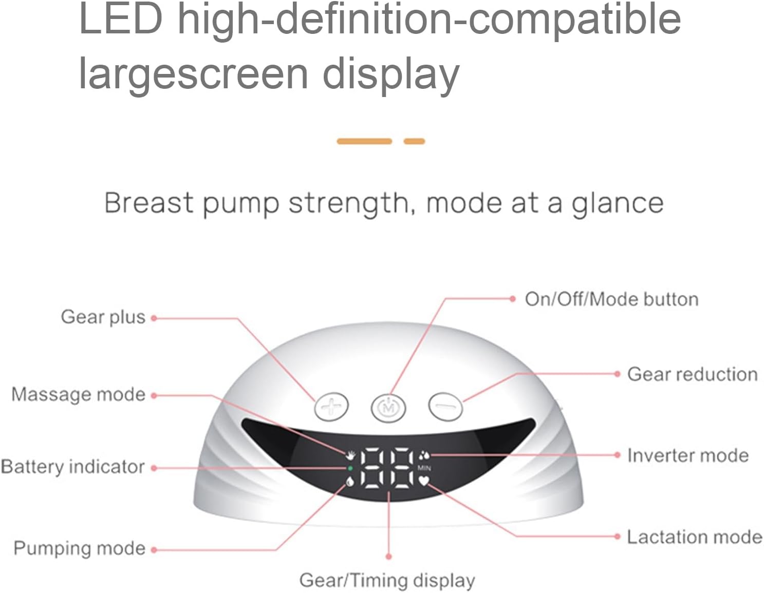 - شاشة عرض ذكية (Intelligent Display): تظهر لكِ الشاشة بوضوح كمية الحليب المستخرجة، مستوى البطارية، وتوقيت الضخ، مع خاصية الإيقاف المؤقت بلمسة واحدة.