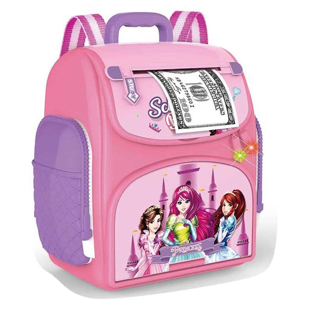 CONCEPTION UNIQUE DE SAC À DOS: Nous avons conçu une bandoulière pour cette jolie tirelire de dessin animé, elle peut être facilement transportée comme un sac à dos. Notre tirelire peut également jouer de la musique pour enfants, ce qui est plus intéressant qu’une tirelire ordinaire. Il peut également être utilisé pour ranger quelques petits objets personnels tels que passeport, lettres, cartes de vœux, carte de remerciement, etc., pour répondre à tous les souhaits des enfants. Mini ATM Safe Bank : la tirelire de style dessin animé prend en charge le glissement automatique du papier-monnaie et dispose d’une fente pour pièces de monnaie. Les enfants peuvent définir leur propre mot de passe pour verrouiller et déverrouiller la banque, une empreinte digitale est nécessaire pour s’assurer qu’elle est ouverte, il s’agit d’une fausse empreinte digitale mais elle fonctionne comme une véritable empreinte digitale. Jouet éducatif : lorsque le billet est proche de l’entrée, il s’enroule automatiquement comme un véritable distributeur automatique. Cette petite tirelire constitue une façon amusante d’enseigner la responsabilité financière à vos enfants. Aidez les enfants à développer une bonne habitude d’économiser de l’argent. Son et lumière : son rapide et lumière clignotante lors de l’utilisation. Attirez l’attention de vos enfants sur la banque de monnaie électronique. Il dispose également de 5 chansons et d’un détecteur de pièces de monnaie, ce qui est intéressant. Nécessite 3 piles AA. (non inclus)