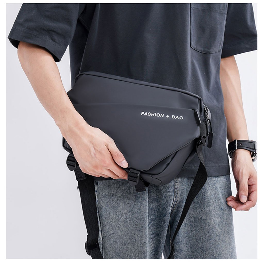 Optez pour un style moderne et fonctionnel avec le Fashion Bag Sac de Poitrine Décontracté pour Hommes . Ce sac polyvalent, conçu pour l’homme actif et urbain, allie confort, praticité et esthétique contemporaine. Il est idéal pour les déplacements quotidiens, les balades en ville, les voyages, ou même les activités de plein air. Caractéristiques principales : Design ergonomique et moderne : Ce sac de poitrine se distingue par son design compact et épuré qui épouse la forme du torse pour une distribution équilibrée du poids. Il offre un look à la fois décontracté et tendance, parfait pour un homme moderne à la recherche de style et de confort. Matériau durable et résistant : Confectionné avec des matériaux de haute qualité tels que le nylon imperméable ou le polyester résistant à l’usure , ce sac est conçu pour résister aux intempéries et à une utilisation quotidienne. Il protège efficacement vos objets personnels de l’eau, de la poussière et des chocs. Bandoulière réglable et rembourrée : Le sac est équipé d’une bandoulière ajustable qui permet de l’adapter à différentes morphologies. La sangle rembourrée garantit un port confortable, même pendant de longues périodes, et peut être ajustée pour être portée à gauche ou à droite, selon vos préférences.