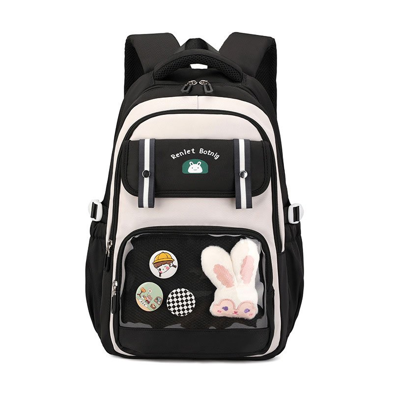 Ajoutez une touche de fantaisie au quotidien scolaire de votre enfant avec ce sac à dos au design kawaii signé BoShiKai . Pratique, original et personnalisable, il plaira autant aux petites qu’aux adolescentes ! Design Kawaii Personnalisable – Une grande poche transparente pour y glisser peluches, autocollants, badges ou petits objets décoratifs. Confort Quotidien – Bretelles larges et ajustables, dossier matelassé pour un port confortable. Poches Multiples – Plusieurs compartiments pour cahiers, trousses, tablette, gourde, etc. Motif Lapin & Logo Mignon – Un style tendance avec son petit lapin blanc et son look coréen. Idéal pour École ou Sorties – Léger, résistant et stylé. Caractéristiques : Dimensions : 45 x 35 x 25 cm Couleur : Noir et crème Poche frontale transparente avec badges et peluche inclus Public : Enfants (primaire, collège ou fans de kawaii) Fermetures éclairs solides, tissu imperméable et durable