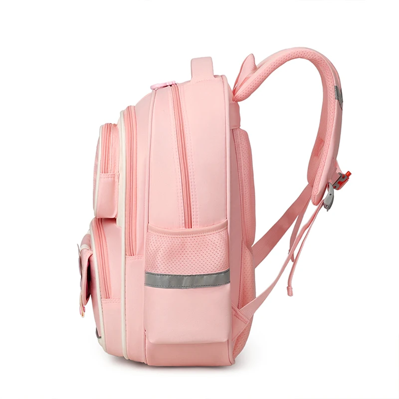 حقيبة ظهر مرحة مزودة بأقسام ولعبة قطيفة وردية اللون