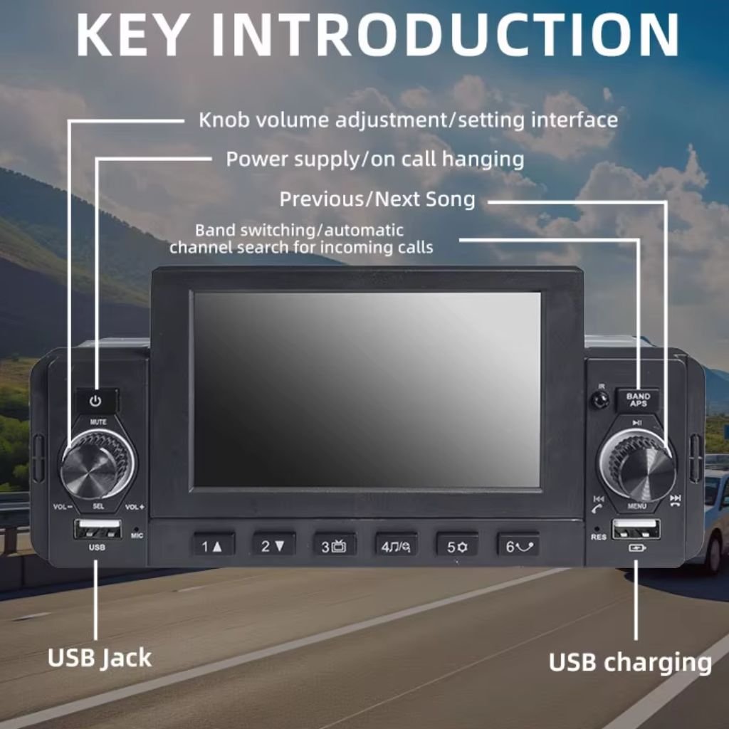 - شاشة MP5 عالية الدقة: تعمل باللمس لواجهة استخدام سلسة وعرض فيديو بجودة ممتازة.