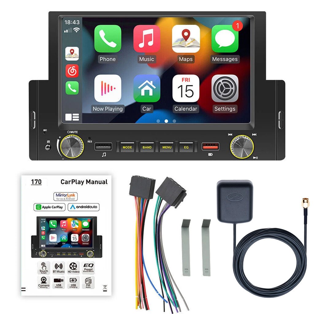 Système CarPlay intégré et Android Auto : connectez-vous à l’iPhone et à l’autoradio Apple Carplay par un câble de données USB pour accéder aux contacts du téléphone mobile, aux e-mails, aux notifications, à la navigation cartographique, à la musique, à la vidéo et à d’autres informations, et également mettre en ?uvre le contrôle vocal. Il en va de même pour Android Auto, le téléphone mobile peut télécharger Android Auto et utiliser un câble de données USB pour se connecter Lien miroir : avec un câble USB connecté, vous pouvez mettre en miroir votre téléphone avec la radio Apple Carplay, vous pouvez afficher l’écran de votre téléphone en temps réel, les téléphones Android prennent en charge le fonctionnement bidirectionnel (version prise en charge : Android 10.1 et inférieur), iPhone uniquement. opération unidirectionnelle, ne peut faire fonctionner l’écran que via le téléphone (versions prises en charge de l’iPhone iOS 13.3 et inférieur). Bluetooth et radio FM : l’autoradio 1 DIN intégré au nouveau système Bluetooth, vous pouvez vous connecter à votre téléphone via Bluetooth pour répondre en mains libres, passer des appels et écouter de la musique. Cet autoradio prend en charge la radio FM, avec 18 stations préréglées, vous pouvez écouter le trafic en temps réel, les émissions de nouvelles, les prévisions météorologiques, etc. Caméra de recul et commande au volant : le carplay simple din est livré avec une caméra de recul. Connecté à la marche arrière, lorsque le véhicule passe en marche arrière, l’écran de l’autoradio affiche automatiquement l’image inversée, ce qui rend votre marche arrière quotidienne plus sûre et plus facile. Prend en charge la commande au volant, changez rapidement les fonctions que vous souhaitez avec le volant de votre voiture, plus pratique pour réaliser une télécommande mains libres. Stéréo de voiture à écran tactile simple DIN : applique un écran tactile capacitif Full HD de 6,2″, vous pouvez garder tous vos contenus préférés à portée de main. La taille d’installation de la radio simple DIN : 187 (L) x 58 (H) x 73 (P) mm. 7,37 * 2,28 * 2,87 pouces Tout câblage.