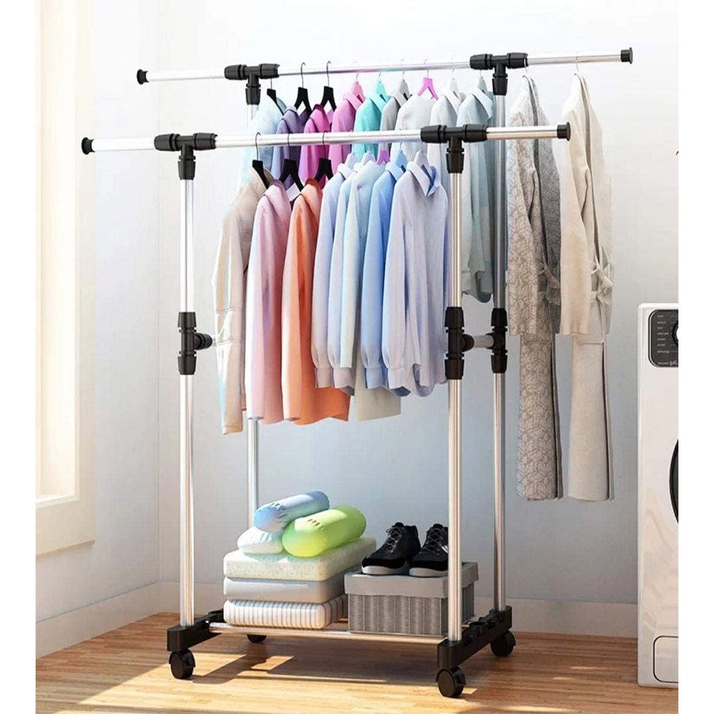 رف ملابس مزدوج محمول بعجلات من الفولاذ المقاوم للصدأ 1 4900 د.ج