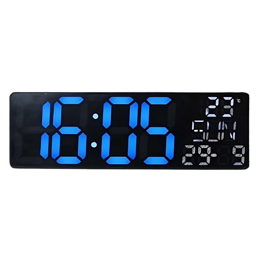 ساعة حائط وطاولة رقمية بإضاءة خلفية زرقاء بتقنية