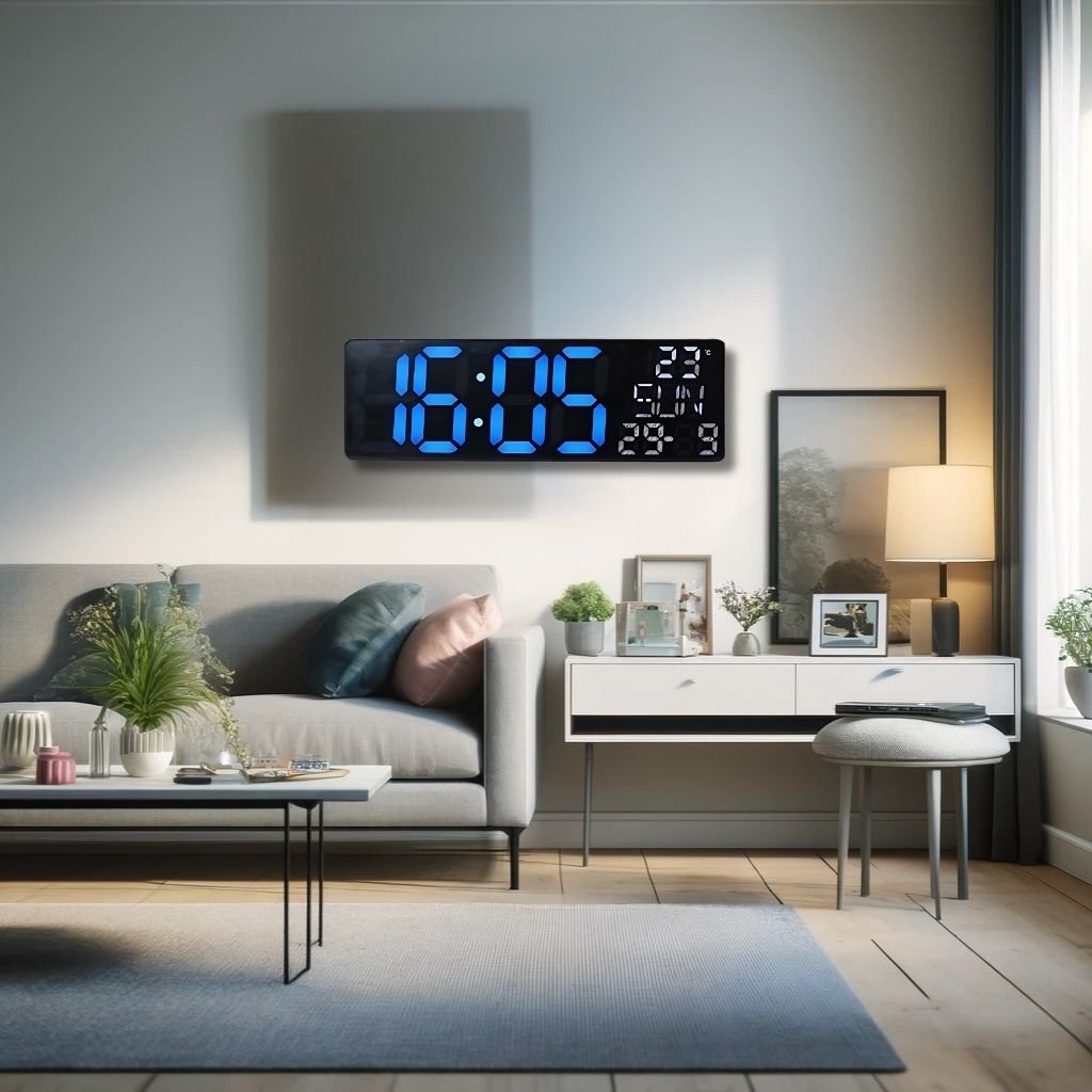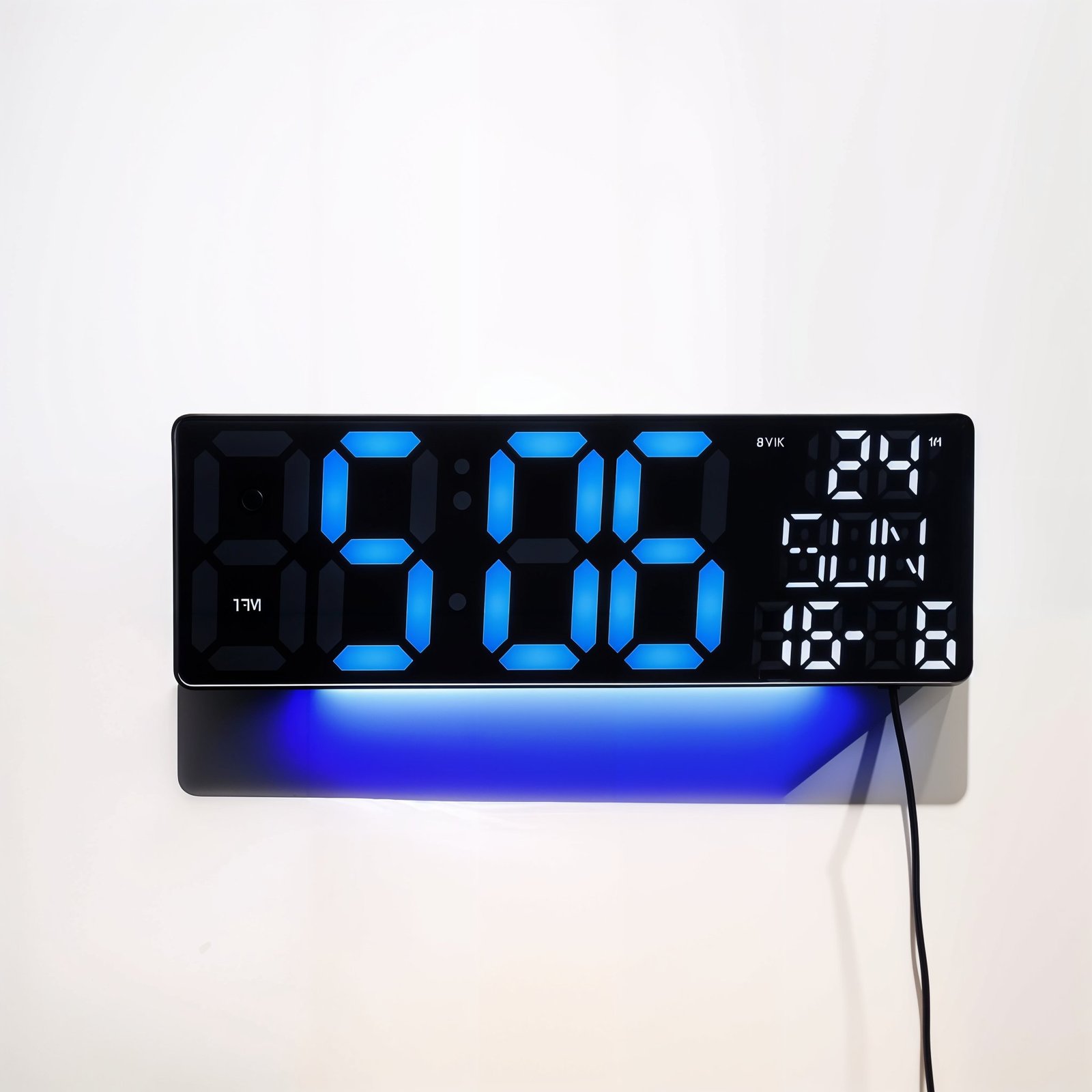 ساعة حائط وطاولة رقمية بإضاءة خلفية زرقاء بتقنية عملي وعالي الجودة، مثالي للاستخدام اليومي ✨👌