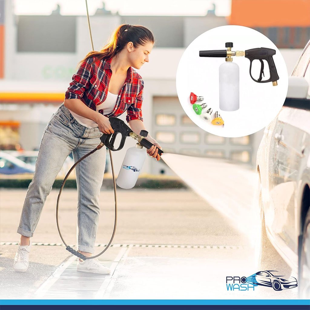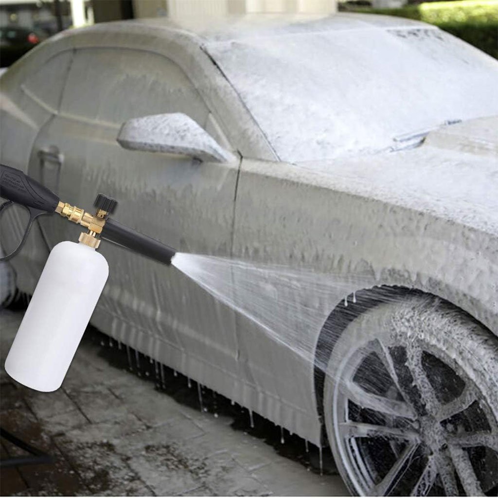 LE KIT DE LAVAGE AUTO ULTIME – Ce kit de lavage auto haute pression étanche avec pistolet/mousseur et flacon de lavage est indispensable pour votre nettoyeur haute pression. Le raccord rapide 1/4″ et le raccord interne métrique M22-14 mm se connectent facilement à un tuyau de nettoyeur haute pression M22. Facile à utiliser et à installer, ce pistolet à mousse avec flacon de savon et 5 buses de lavage interchangeables est facile à prendre en main et répond à tous vos besoins de lavage haute pression. Nettoyer sa voiture n’a jamais été aussi simple grâce à ces accessoires de lavage. De l’arrosage des plantes à l’élimination des taches les plus tenaces, 5 buses de 0° à 60° permettent de contrôler le jet, de la pointe crayon au jet éventail, et ainsi de maîtriser la pression. Idéal pour atteindre les endroits les plus difficiles d’accès, notamment les allées, les terrasses, les toits, les bardages et les véhicules. POUR LES PROFESSIONNELS OU LES AMATEURS – Le jet d’eau haute pression, combiné au détergent et à l’air, produit une mousse épaisse qui adhère à la surface à nettoyer. Cela permet au produit nettoyant d’agir plus longtemps sur les particules de saleté et de les éliminer plus efficacement, pour un résultat optimal à chaque fois.