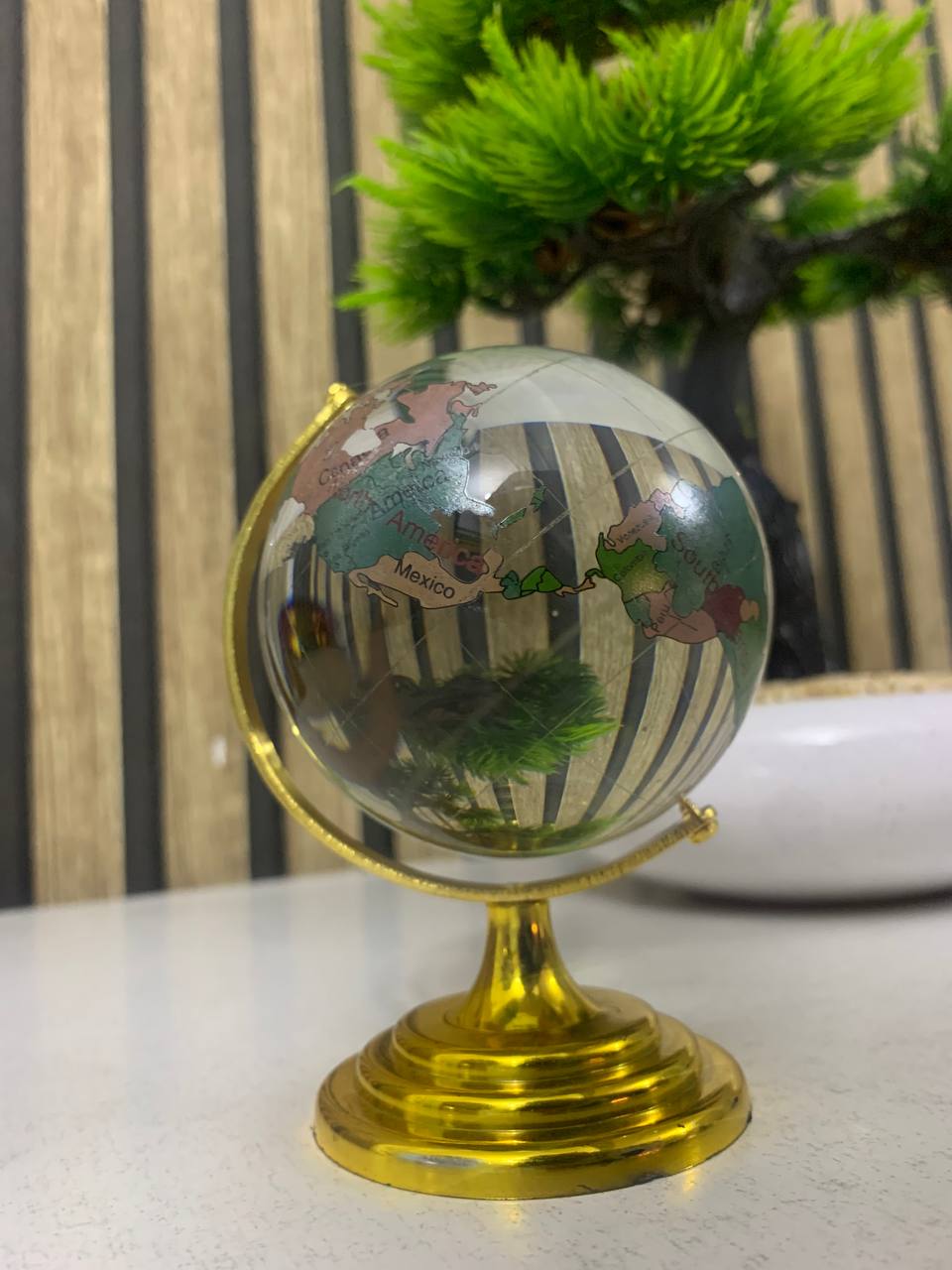 كرة كريستالية ديكورية دوارة بخريطة العالم للمكتب