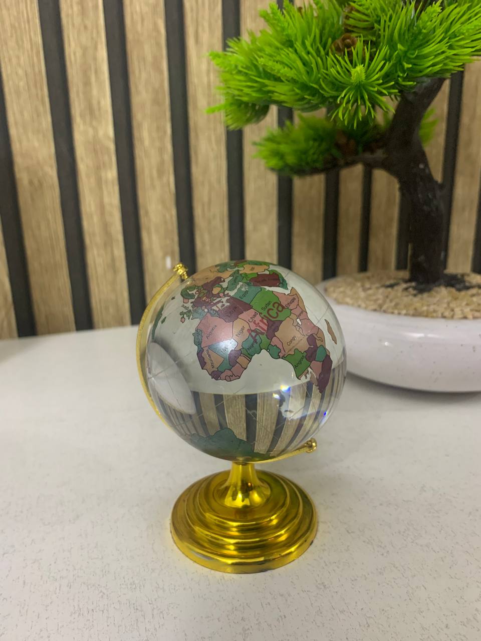 🌍 كرة أرضية ديكورية كريستال – لمسة فنية أنيقة لمكتبك