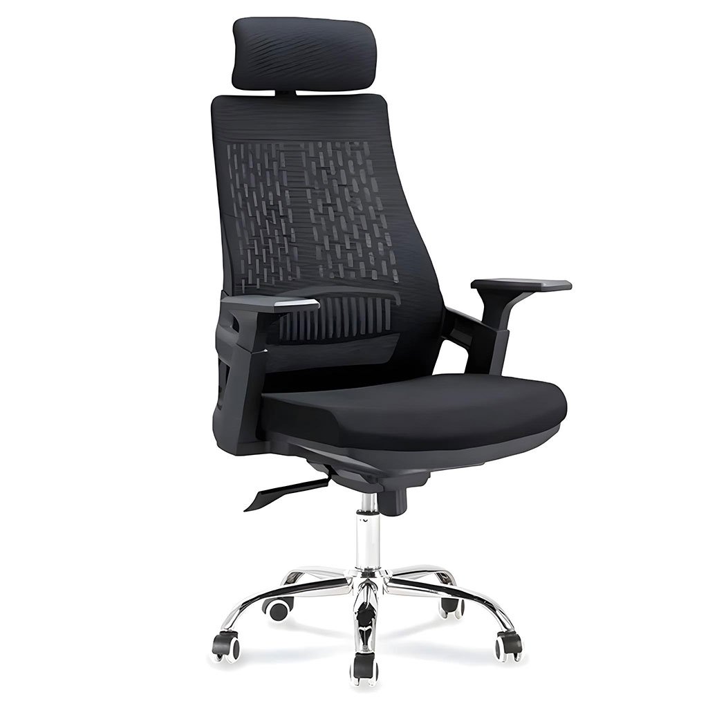 Transformez vos heures de travail en moments de confort grâce à cette chaise de bureau ergonomique au design élégant. Son dossier en maille respirante maintient une fraîcheur agréable, même lors des journées les plus longues. L’appui-tête réglable et les accoudoirs ergonomiques offrent un soutien parfait pour votre cou, vos épaules et vos bras. L’assise rembourrée, associée à une structure robuste en métal chromé et à des roulettes fluides, assure à la fois stabilité et mobilité. Idéale pour le bureau comme pour le télétravail, elle allie style, confort et durabilité pour booster votre productivité. Points forts : Dossier en maille respirante pour plus de confort Appui-tête et accoudoirs réglables Assise rembourrée pour un soutien optimal Base solide en métal chromé avec roulettes silencieuses Parfaite pour un usage professionnel ou domestique Taille : 98 × 47cm