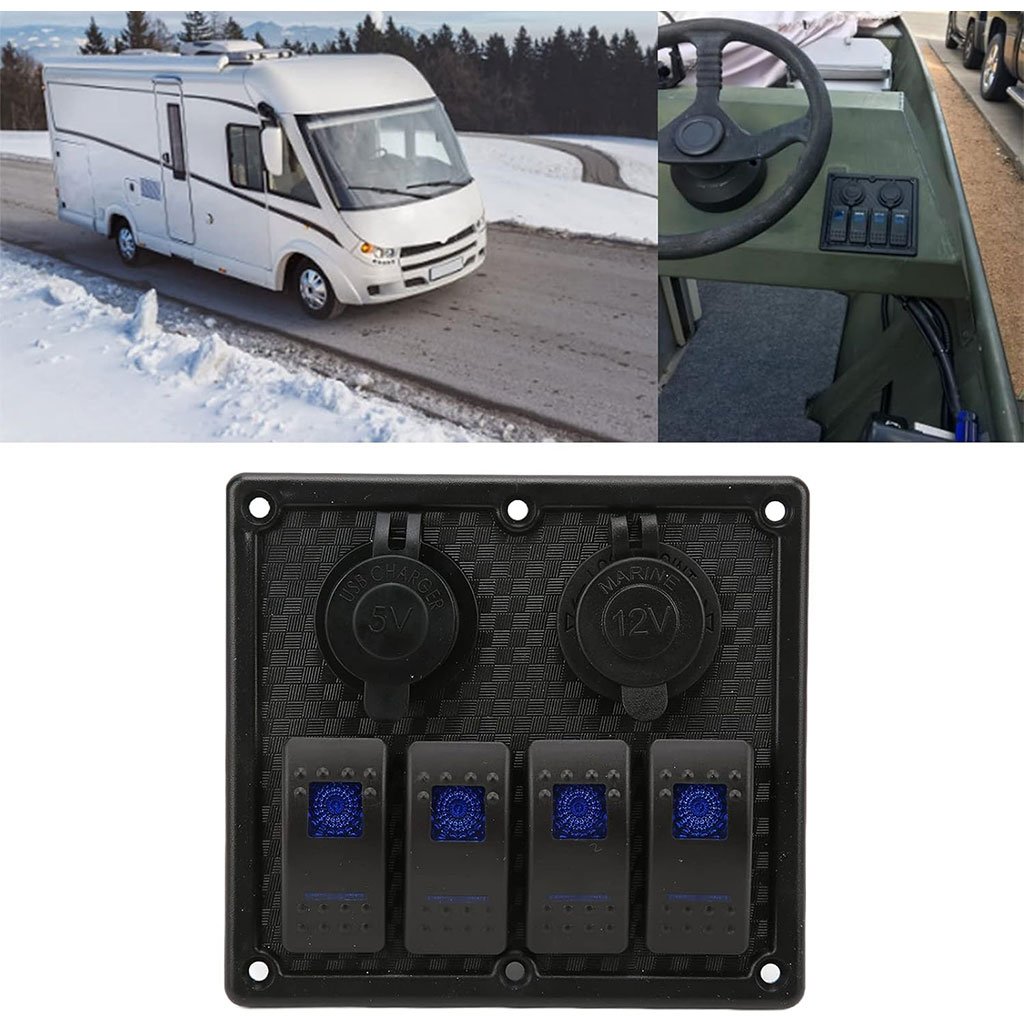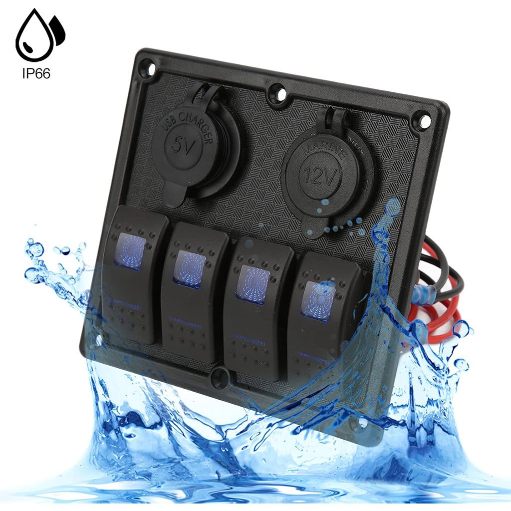 [IP65 étanche] : le panneau d’interrupteurs à bascule à 4 gangs est doté d’une face de panneau résistante aux éclaboussures, de capuchons résistants à l’eau et d’un anneau en caoutchouc anti-infiltration [Entièrement fonctionnel] : indicateur lumineux LED bleu, carte étanche, chargeur 12 V et double adaptateur d’alimentation USB 5 V [Application étendue] : interrupteurs à 5 broches largement applicables pour les bateaux, les voitures, les véhicules de camping, les camions, les yachts, les bateaux de plaisance [Conception impeccable] : Parfait pour votre machine. Façade en plastique ABS robuste. Conception tout-en-un, utilisable en kit pour contrôler n’importe quel appareil électrique de véhicule. [Protection multicouche] : avec fusible, protection contre les courts-circuits, les surcharges et les inversions de polarité. Protection sûre grâce à la fonction anti-retour, très pratique à utiliser.