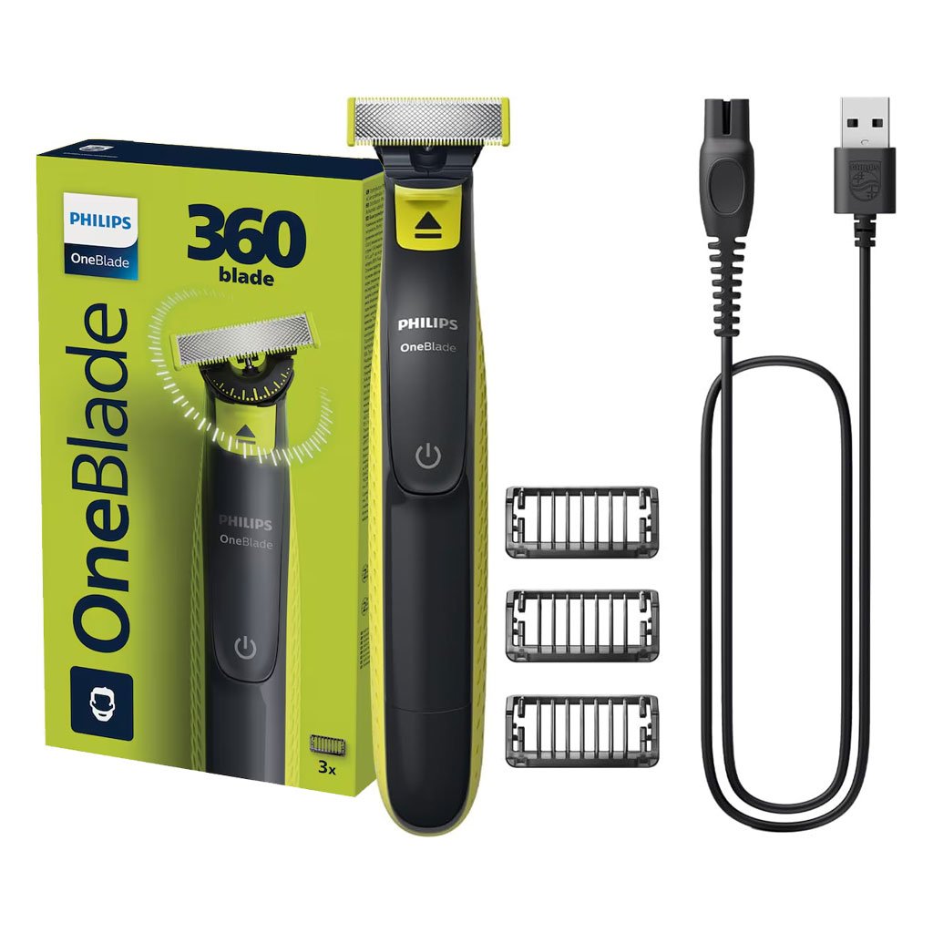 Améliorez votre routine de toilettage avec le Philips OneBlade 360, un rasoir hybride révolutionnaire pour une coupe précise, un rasage confortable et des bords nets. Cet outil polyvalent simplifie votre processus de toilettage, vous faisant gagner du temps et des efforts. Profitez d’un rasage de près et confortable et d’un coiffage sans effort grâce à ce design innovant. Peigne réglable 5 en 1 : Obtenez des longueurs de coupe précises de 1 à 5 mm. Système de protection double : Revêtement glissant et pointes arrondies pour un rasage confortable. Mouvement de la lame à 360° : Suit sans effort les contours du visage pour un rasage en douceur. Utilisation humide et sèche : Rasez-vous confortablement, humide ou sec, même sous la douche. Lames longue durée : Chaque lame en acier inoxydable dure jusqu’à 4 mois (sur la base de 2 rasages complets par semaine).