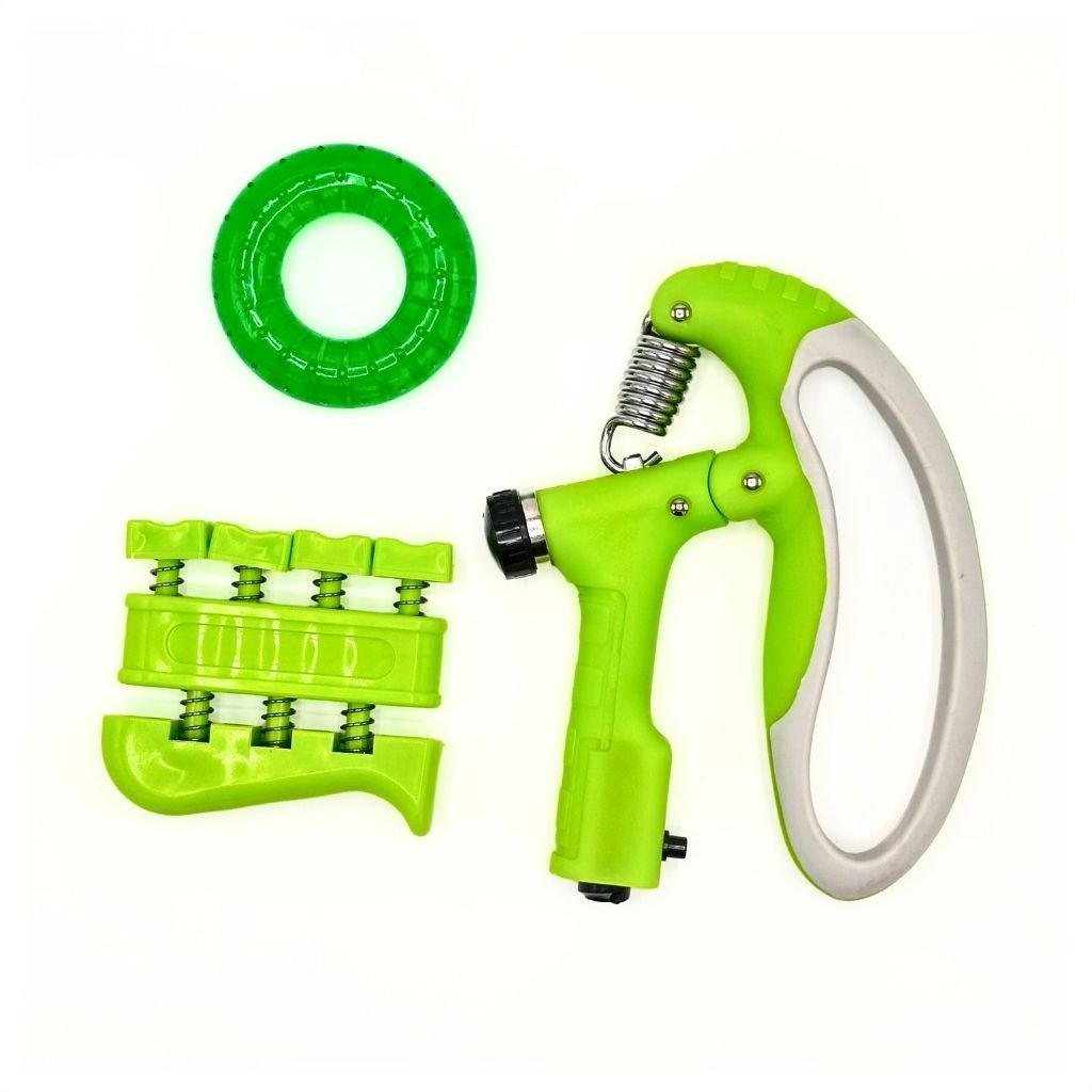 • 5 قطع تشمل: مقبض تقوية، موسع أصابع، حلقة قبض، كرة مضادة للتوتر.