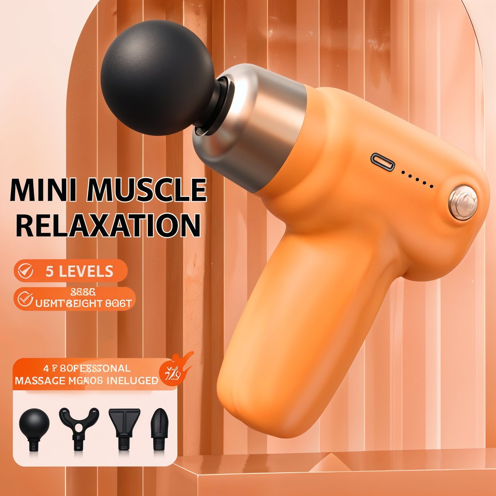مسدس تدليك صامت بخمس سرعات عملي وعالي الجودة، مثالي للاستخدام اليومي ✨👌