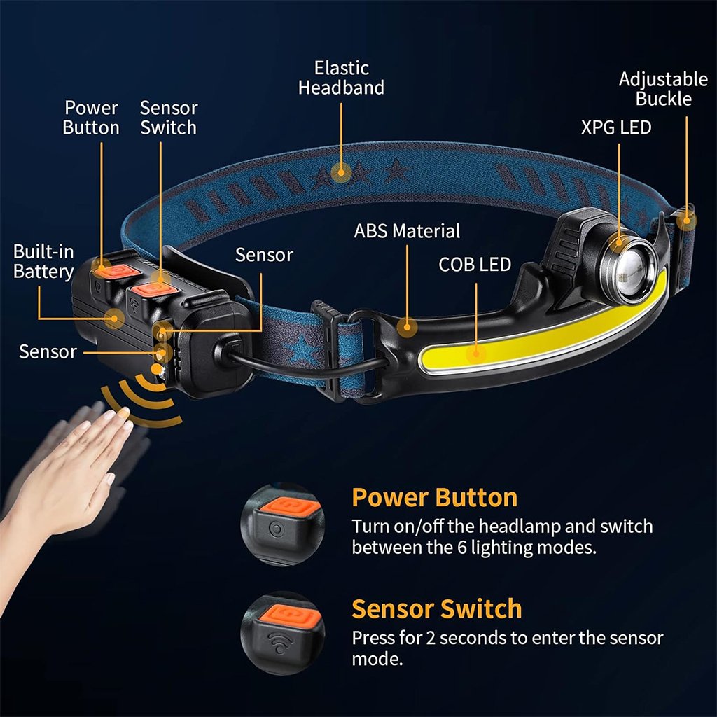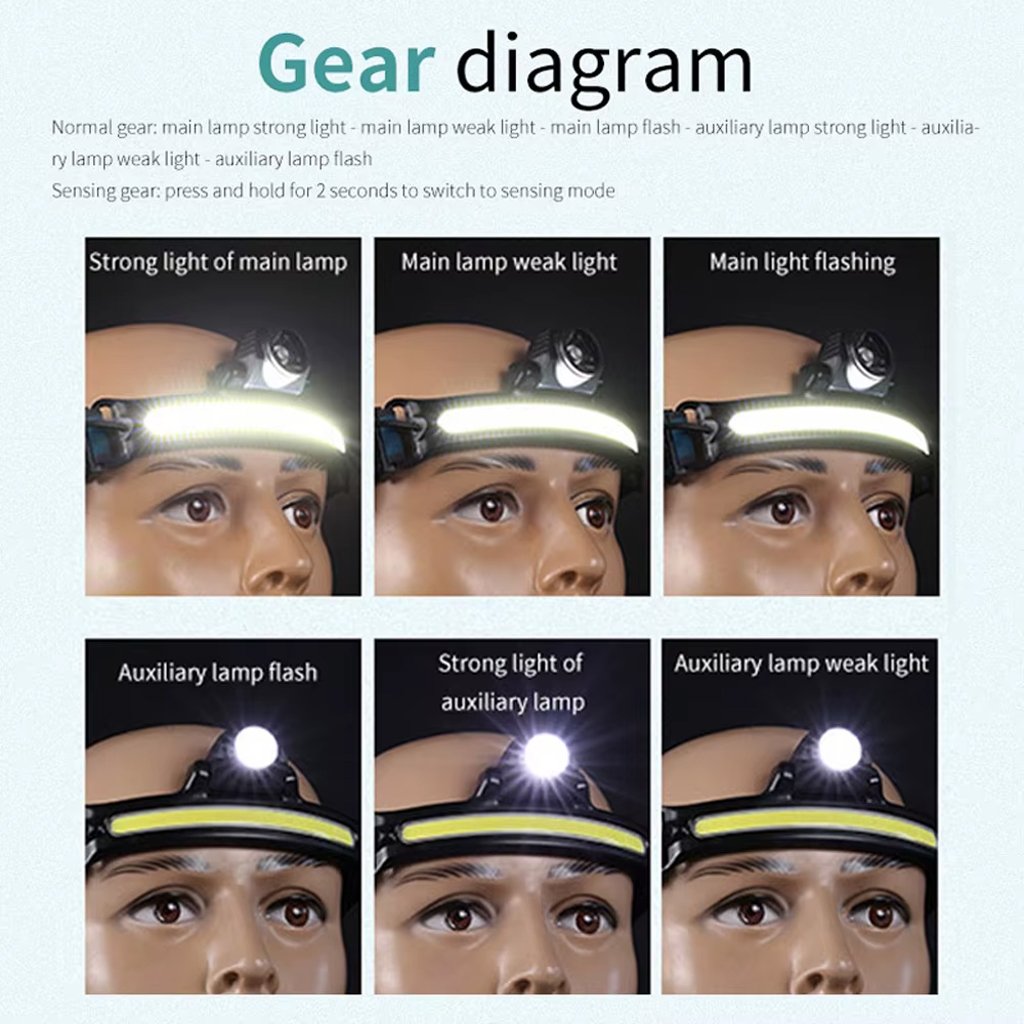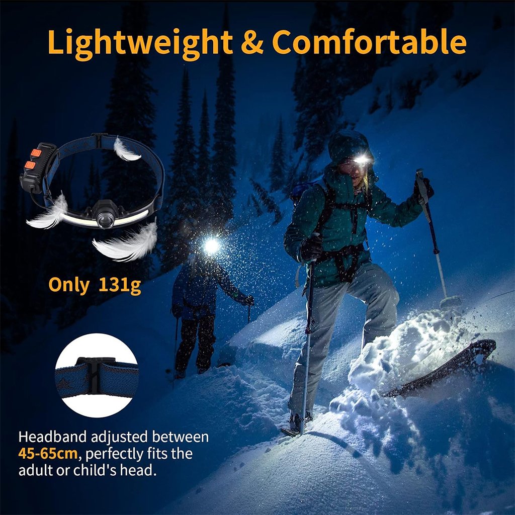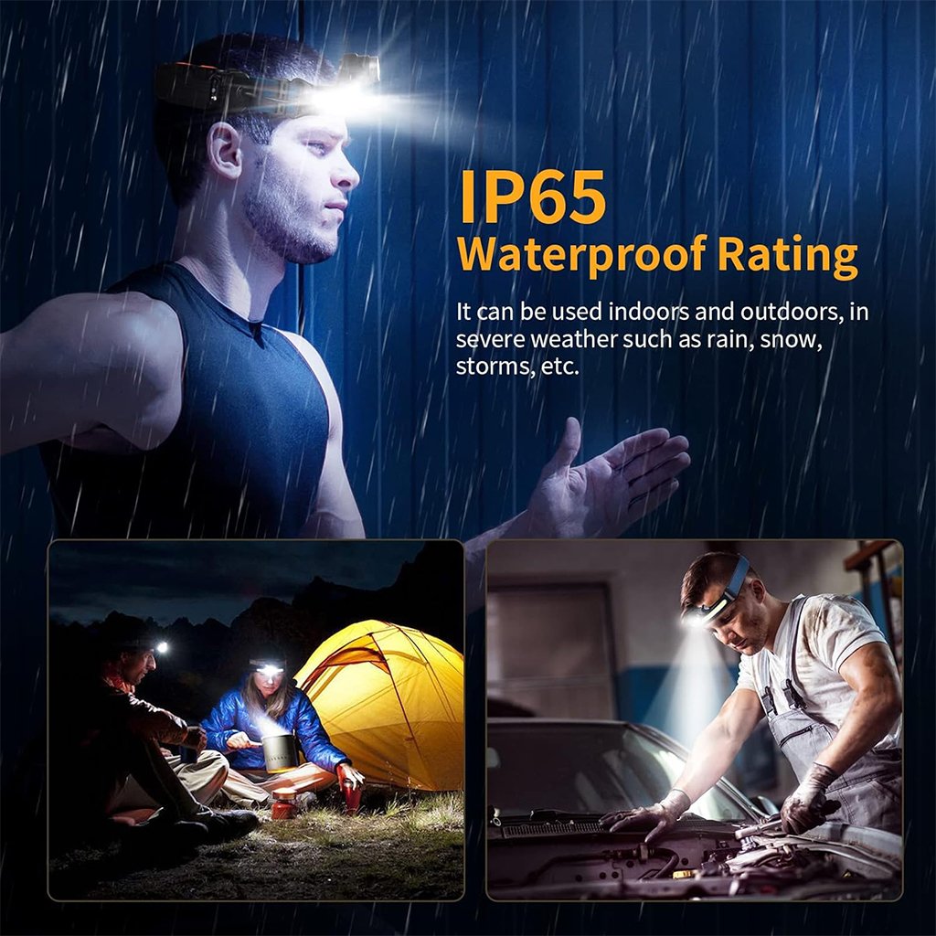 【6 modes d’éclairage】 Notre lampe frontale adopte des sources lumineuses, torche LED et bande LED, équipées de perles de lampe LED de haute qualité, la luminosité la plus élevée atteint 600LM, la source de lumière est stable et durable. Il dispose de 6 modes d’éclairage : Lumière de bande puissante / faible / clignotante et Lumière de torche puissante / faible / clignotante pour répondre à vos besoins d’éclairage dans différents environnements. 【Capteur de mouvement】Capteur infrarouge intégré de haute qualité, après avoir allumé l’interrupteur du capteur, vous pouvez changer le mode d’éclairage et allumer/éteindre la lampe en agitant la main à une certaine distance devant le capteur de mouvement. Vous n’avez pas besoin de le tenir d’une main comme une lampe de poche, vous pouvez le porter sur votre tête et utiliser les deux mains librement, ce qui est très pratique. 【Zoom réglable, grand angle de 230°】 La bande LED peut atteindre un éclairage grand angle de 230°. L’angle supérieur et inférieur de la torche LED peut être ajusté de 135° et la distance d’éclairage peut atteindre 350 m. Il peut non seulement éclairer les pieds, mais également éclairer largement l’environnement environnant, et il n’y a pas d’angle mort dans l’éclairage pour éviter tout danger potentiel. 【Rechargeable USB, indicateur de puissance restante】 Batterie au lithium haute capacité intégrée de 2600 mAh, avec câble de charge Tpye-C, charge rapide en 3-4 heures. Lorsqu’il est complètement chargé, il peut être utilisé pendant environ 5h-8h selon le mode d’éclairage. Vous pouvez facilement connaître la puissance restante grâce à l’indicateur d’affichage de la batterie, ce qui vous permet de mieux utiliser la lampe frontale. 【Léger, taille réglable】 Le bandeau de la lampe est élastique et réglable, ne pesant que 131 grammes, compact et portable, confortable à porter, durable et difficile à tomber. La taille de la circonférence de la tête peut être ajustée librement entre 45 cm et 65 cm pour s’adapter parfaitement à la tête et au casque de sécurité de l’adulte ou de l’enfant. 【Étanche IP65, largement utilisé】 La lampe frontale a un indice d’étanchéité IP65. La coque en ABS de haute qualité est plus étanche et peut être utilisée à l’intérieur et à l’extérieur. Convient pour le camping, le vélo, la course, la marche nocturne, l’alpinisme, la pêche, la chasse, la lecture, la réparation automobile, le bricolage ou toute situation d’urgence, comme un incendie, un ouragan, la neige, une tempête, une panne de courant.