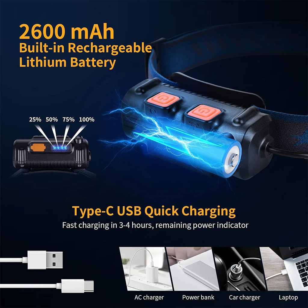 مصباح رأس قابل لإعادة الشحن بسعة مللي أمبير مع عملي وعالي الجودة، مثالي للاستخدام اليومي ✨👌