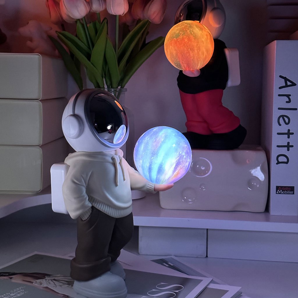 [Lampe Lune] : Ajoutez une touche de mystère spatial à la chambre avec notre lampe de bureau 3D astronaute lunaire ! Avec son design réaliste d’astronaute et ses 6 couleurs LED éclatantes, cette lampe est la décoration idéale pour la chambre de tout jeune aventurier sur le thème de l’espace. [2 en 1, Lampe Astronaute et Enceinte Bluetooth Portable] : Haut-parleur intégré de 5 W. Vous pouvez non seulement profiter du plaisir lumineux, mais aussi écouter de la musique pour vous détendre. [Lampe astronaute unique tenant la Lune] : Découvrez le charme d’une lampe astronaute de haute qualité. Fabriquée avec précision à partir de matériaux haut de gamme, elle offre un rendu exceptionnel. Son socle robuste assure une stabilité parfaite. Avec son apparence raffinée et sa qualité irréprochable, elle est non seulement un bel objet de décoration, mais aussi le choix idéal pour apporter une touche d’élégance à n’importe quel espace. [Décoration de chambre et idées cadeaux parfaites] : Ce serait un magnifique cadeau qui émerveillera vos proches à tout moment. La lampe astronaute peut servir de veilleuse lune pour la chambre, de lumière pour une fête d’anniversaire, d’élément de décoration, de lampe pour jouer, de mini-enceinte, de cadeau pour la fête des mères ou de veilleuse pour enfants. [Batterie rechargeable intégrée de 1200 mAh] Grâce à sa charge USB basse tension et à son ampoule LED écoénergétique, la lampe reste froide même après une utilisation prolongée et diffuse une lumière douce et sans scintillement qui ne blesse pas les yeux. Matériau du produit : plastique ABS Spécifications Bluetooth : 5.0 Distance de transmission : 10 m Spécifications du haut-parleur : 52 mm Spécifications de l’amplificateur : 5 W 3,7 V Caractéristiques de la batterie : 1200 mAh Durée de jeu : 2 à 5 heures Dimensions du produit : 145 x 13 x 235 mm Poids : 612 g Fonctions principales : Compatible Bluetooth, carte TF, clé USB, fonction veilleuse