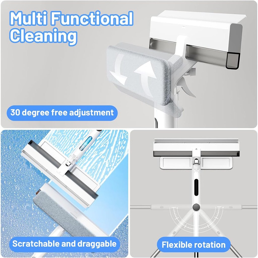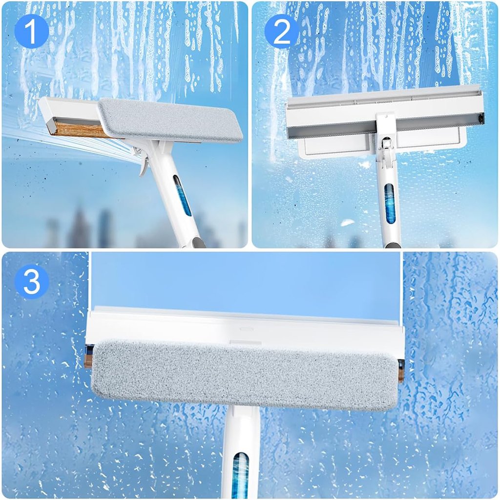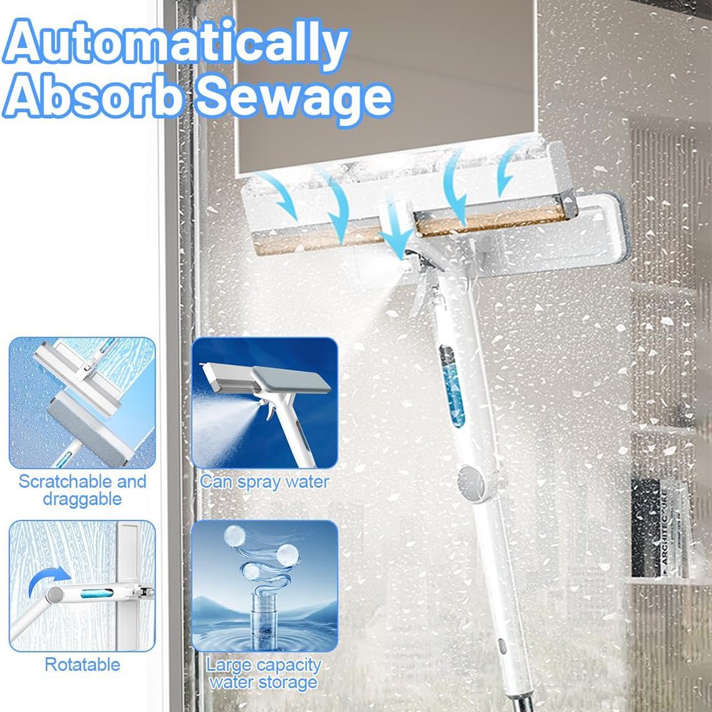 ممسحة زجاج بمقبض طويل وبخاخ تنظيف 3 في 1 عملي وعالي الجودة، مثالي للاستخدام اليومي ✨👌