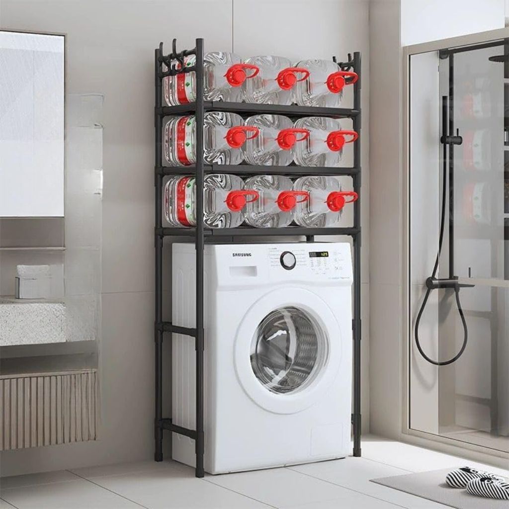 - تحسين المساحة: تصميم رأسي لوضعه فوق المرحاض أو الغسالة.