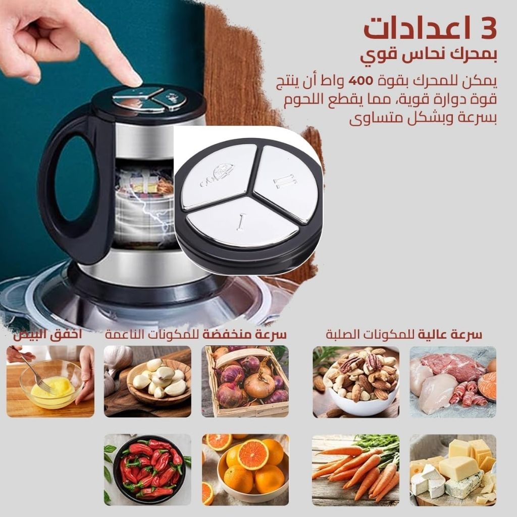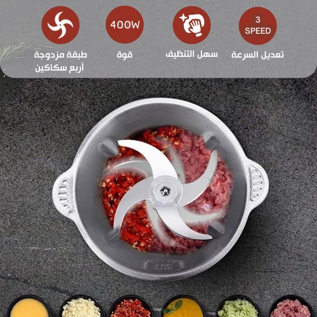 أداة مثالية لفرم اللحوم، الخضار، الفواكه وأكثر بسهولة وسرعة.