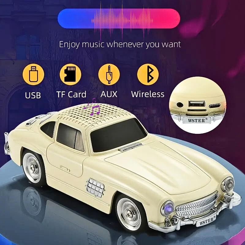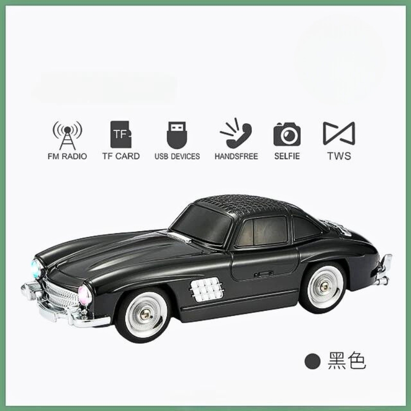 Haut-parleur audio Bluetooth sans fil En forme de Voiture Vintage , Carte mémoire , appels , AUX , Clé USB , FM RADIO