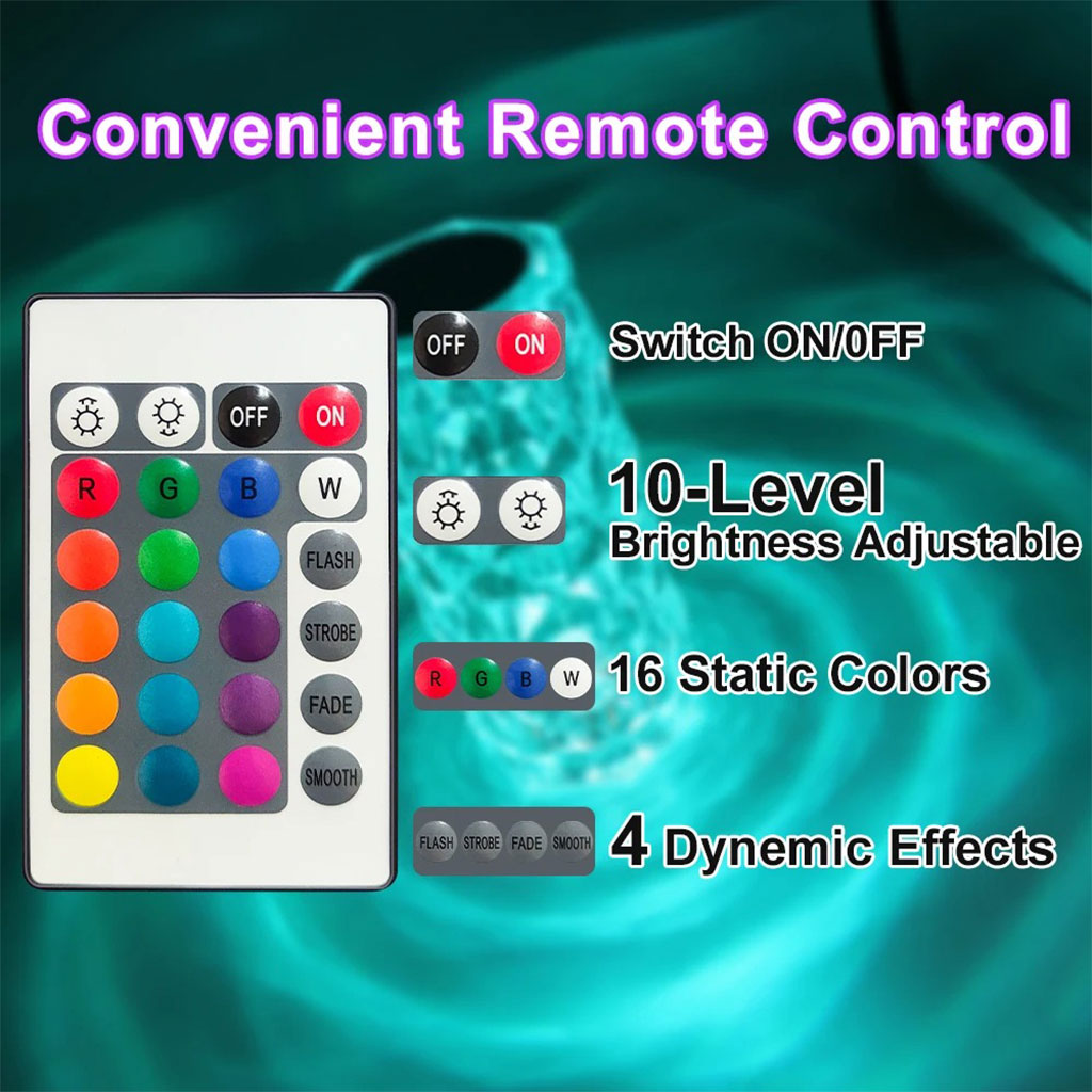 - تقنية إضاءة ثلاثية الأبعاد: عند التشغيل يلمع المصباح مثل الألماس ويضفي جوًا رومانسيًا.