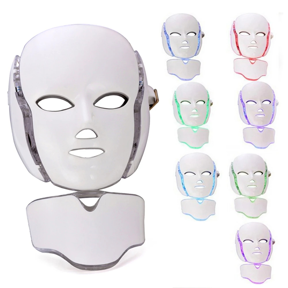 • Le masque facial à LED à 7 couleurs peut résoudre les problèmes de peau tenaces et réparer les cicatrices d’acné — Masque pour le cou +: masque de taille réglable, soins de la peau du cou.