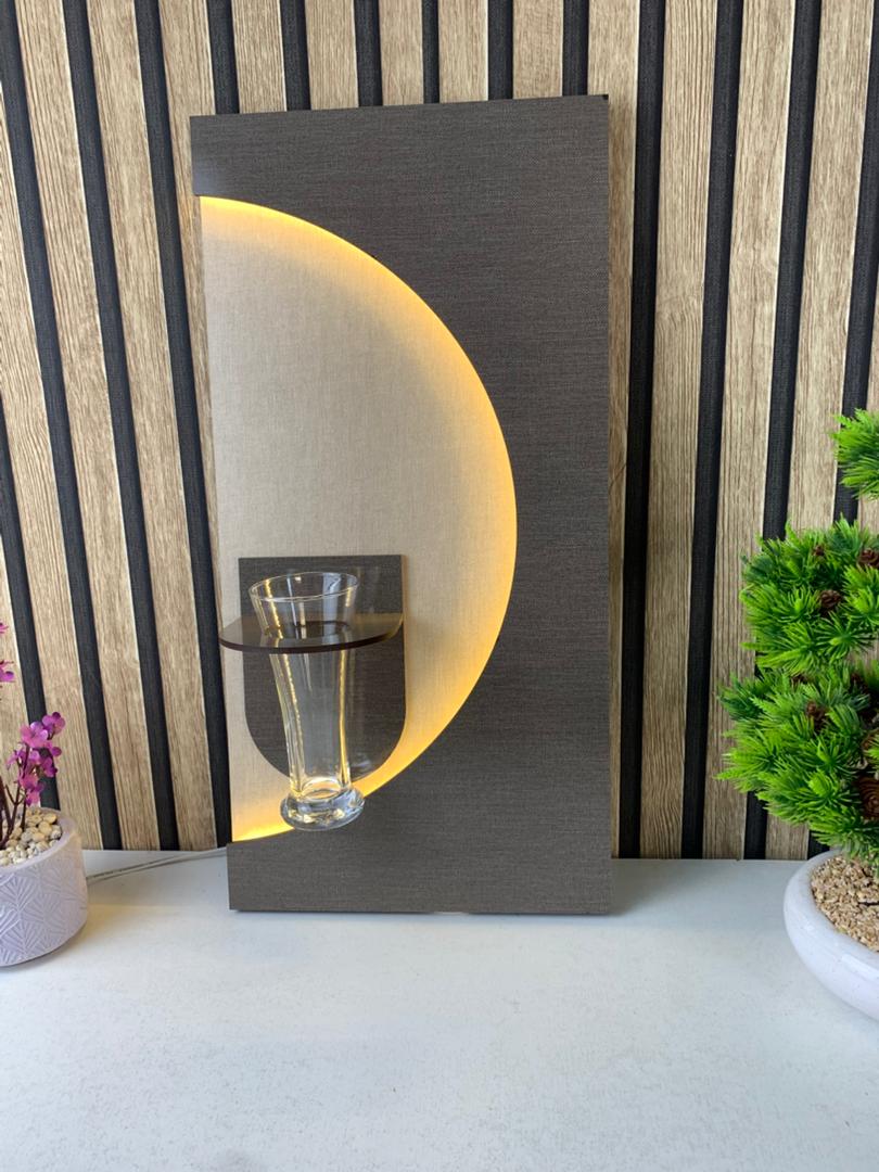 أضف لمسة من الفخامة والدفء إلى منزلك مع هذه اللوحة الجدارية الخشبية المضيئة، التي تجمع بين الأناقة العصرية والطابع الطبيعي بفضل تصميمها المنحني الأنيق وزهرية الزجاج المزينة بنباتات صناعية (أوراق خضراء وأزهار بيضاء) تُضيئها إضاءة LED ناعمة تبعث جوًّا من الراحة والسكينة.