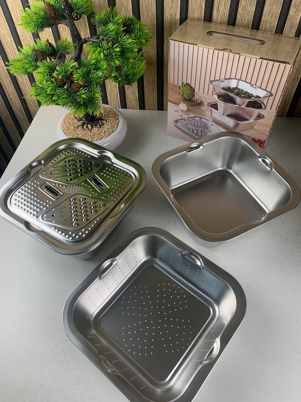 Râpe multifonctionnelle Delaval en acier inoxydable avec panier d’égouttage 3EN1 – مفرمة وقطاعة خضر متعددة الإستعمالات 1 3850 د.ج