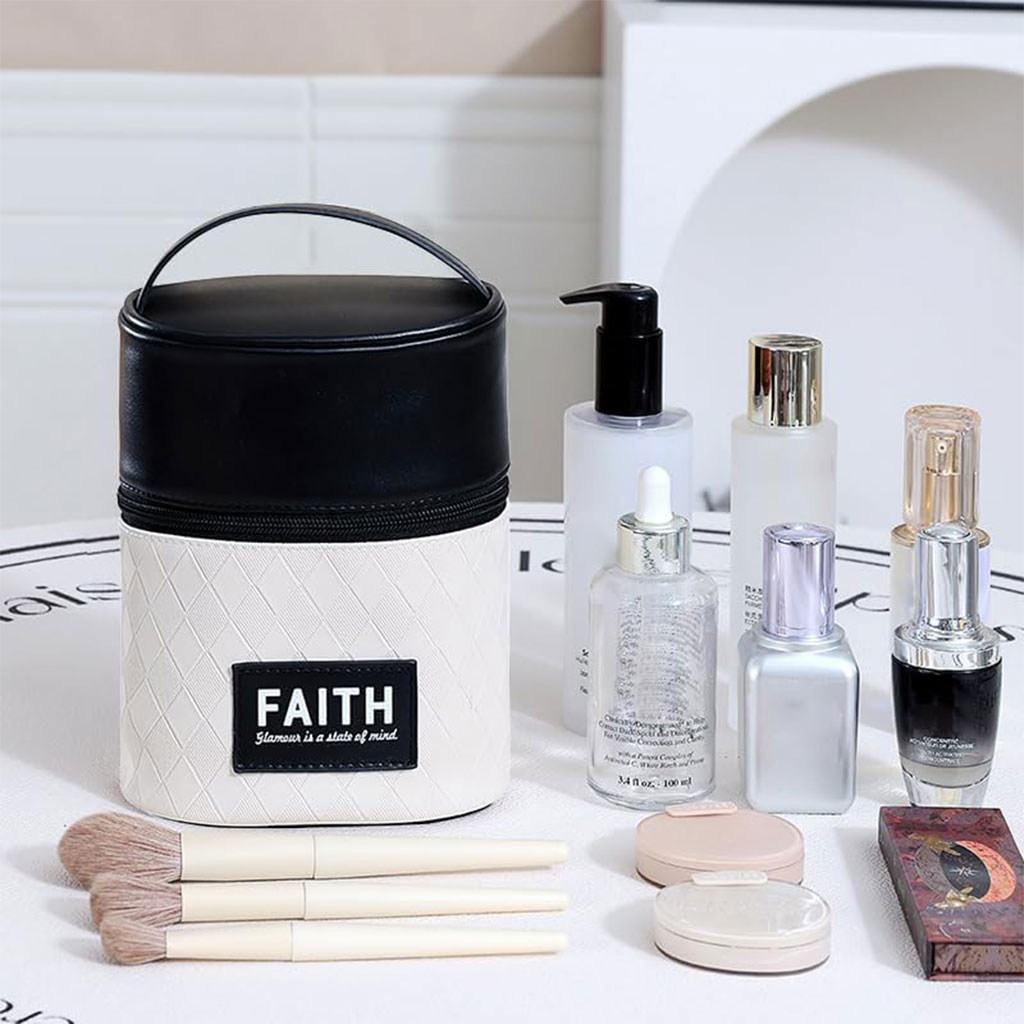 - تنظيم فعال: (الأبعاد: 5.31” × 3.94” × 7.48”) مع جيوب داخلية لترتيب الفرش وكريم الوجه والماسكارا وكريم الأساس وأحمر الشفاه بحيث يكون لكل عنصر مكانه.